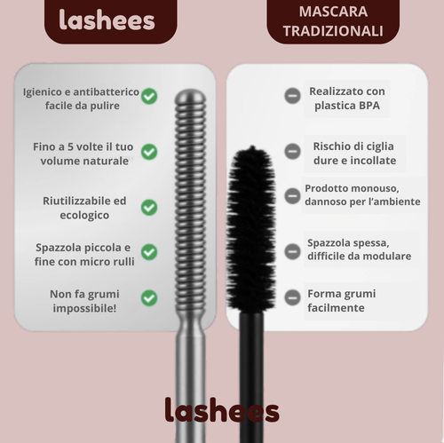 Con LASHEES, ogni passata dona volume, curvatura e definizione istantanea — senza grumi, senza sforzo.